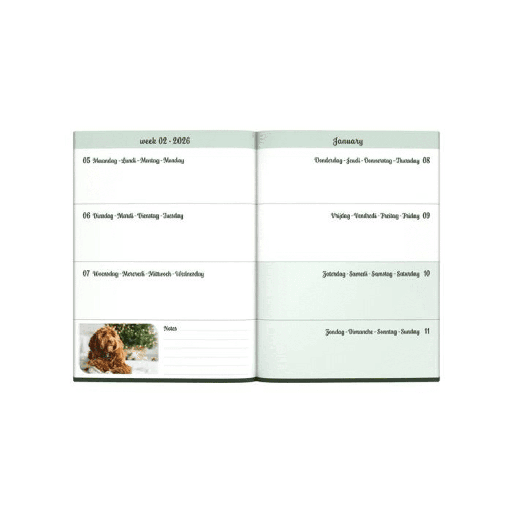 Deze agenda combineert overzicht en stijl met een lief hondenontwerp.- Handig pocketformaat – makkelijk overal mee naartoe te nemen