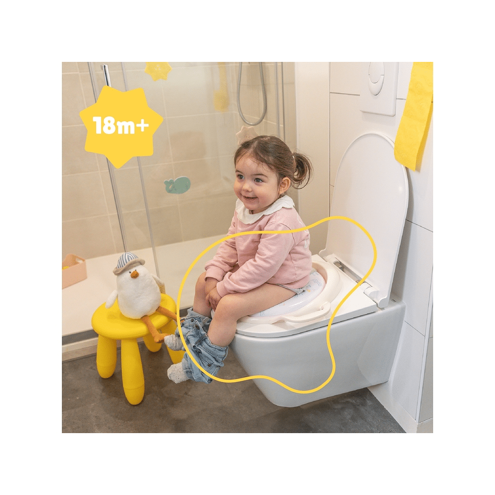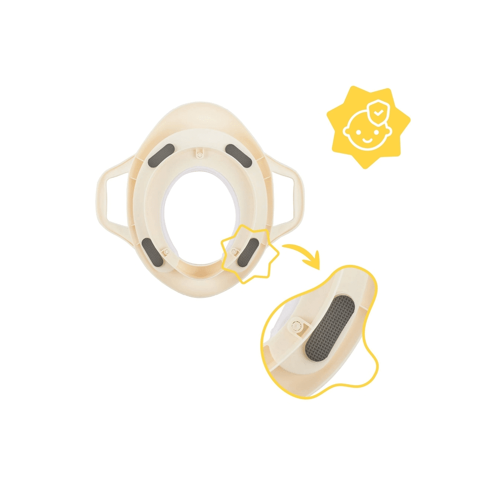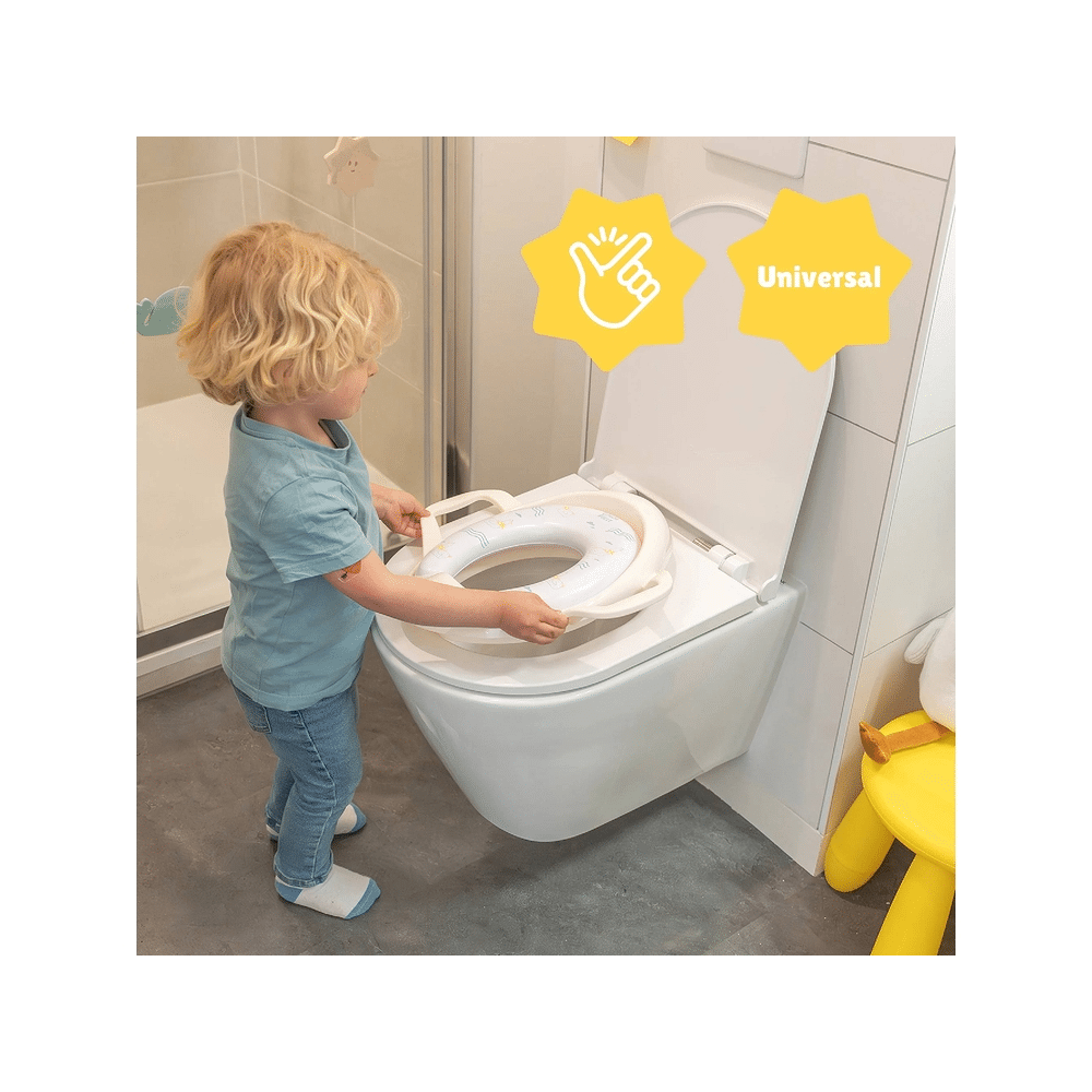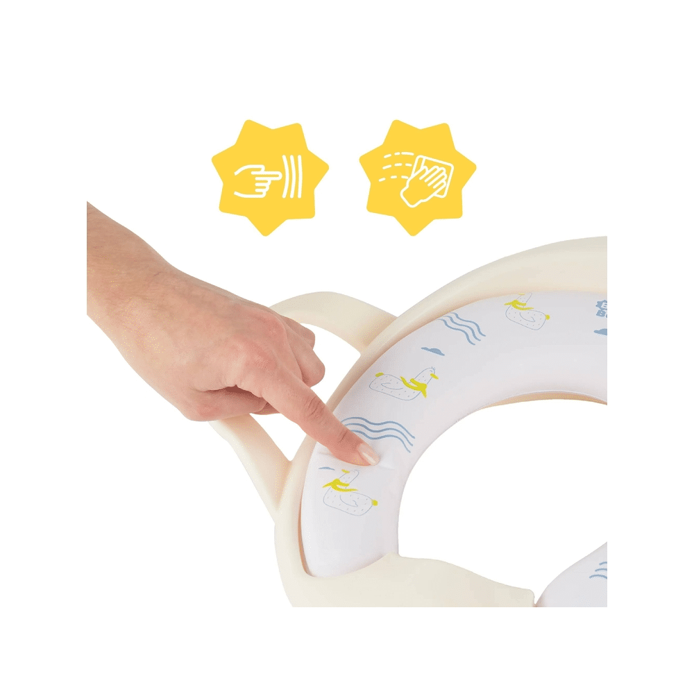 De handige handvaten aan de zijkant geven extra steun en zelfvertrouwen, zodat je kindje zich veilig voelt bij elke toiletbeurt. De zachte zitting zorgt voor een comfortabel gevoel, terwijl de anti-sliprand onderaan ervoor zorgt dat alles stevig op z’n plek blijft liggen – geen geschuif of gewiebel dus!