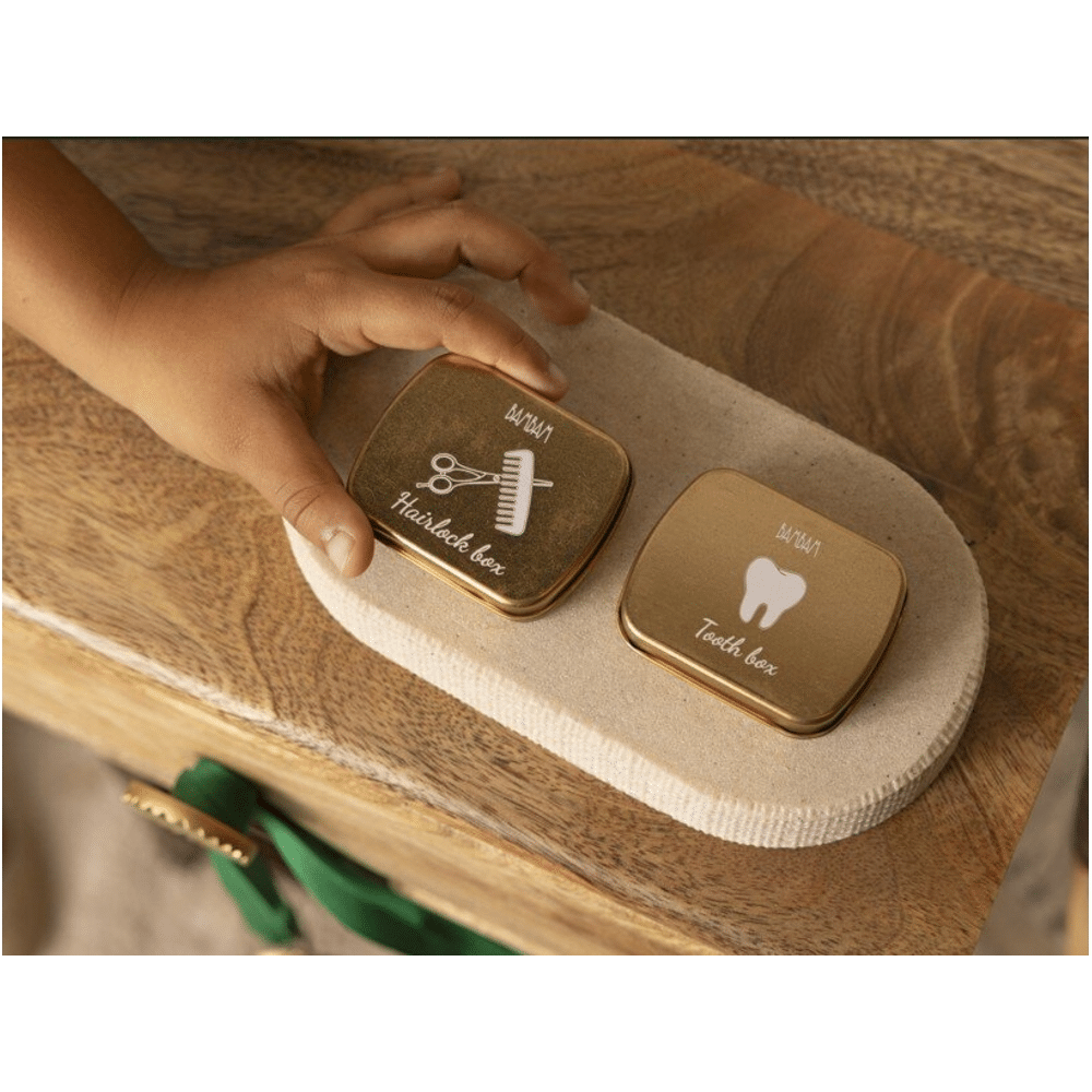 Het Bambam Haarlok Doosje Goud biedt een stijlvolle en veilige manier om je mooiste lokjes te bewaren. Een klein luxe-item dat zowel praktisch als persoonlijk is.