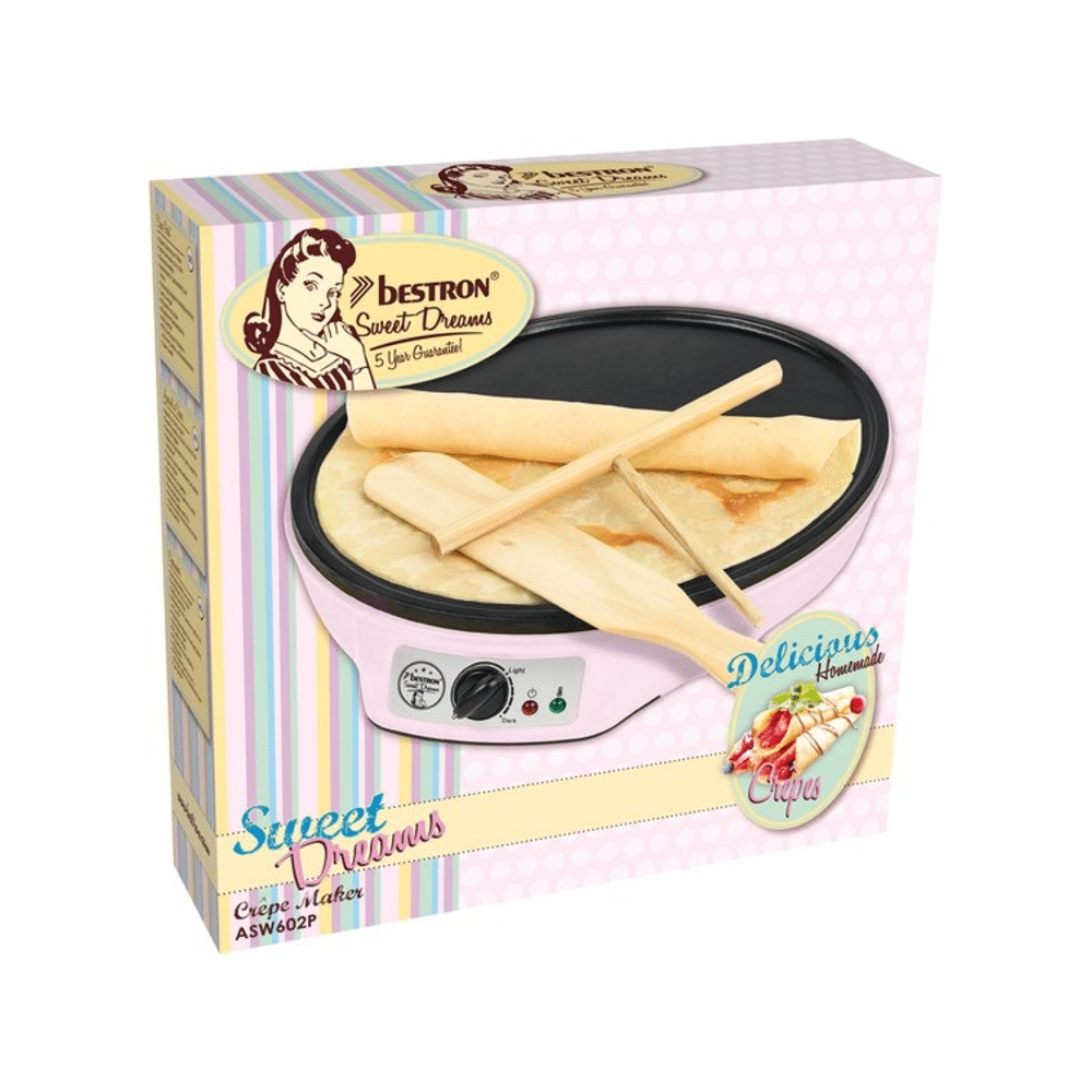 De roze Bestron Sweet Dreams zorgt voor dunne, gelijkmatige pannenkoeken in een handomdraai. Makkelijk te gebruiken, makkelijk te reinigen.Veelgestelde vragen