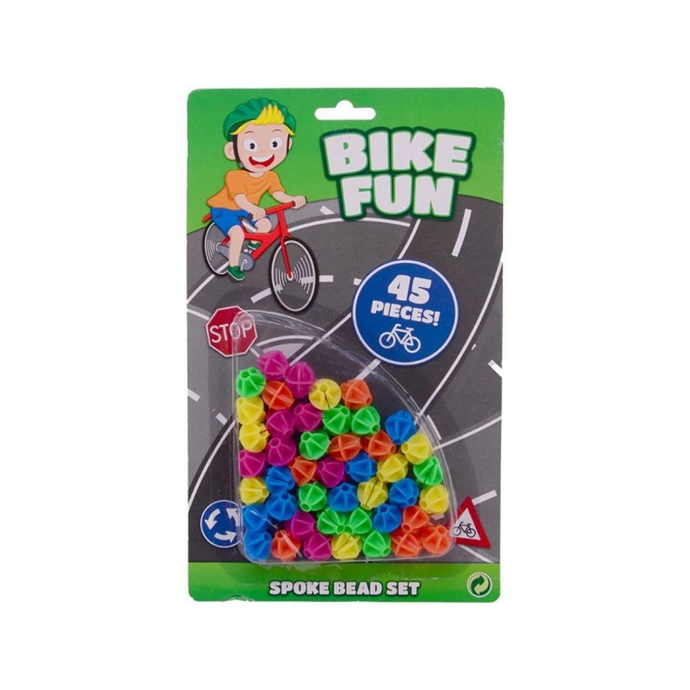 Geef je fiets meteen extra fun met de Bike Fun set van 36 spaakkralen. Ze klikken zo op je spaken en zorgen voor een vrolijk ratelend geluid tijdens het fietsen.Hoe bevestig je de spaakkralen?