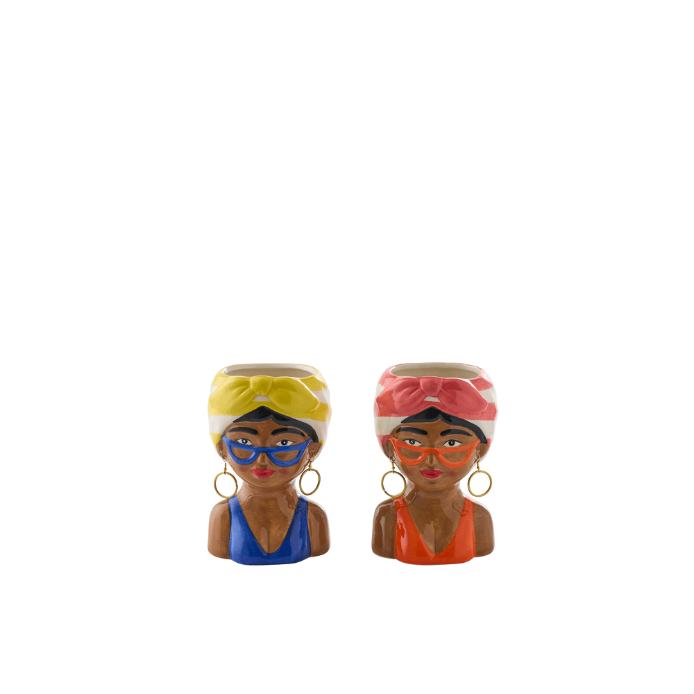 - Product: Bloempot Dame Gestreept Keramiek Small 10x10x15.8cm 2 assortiment