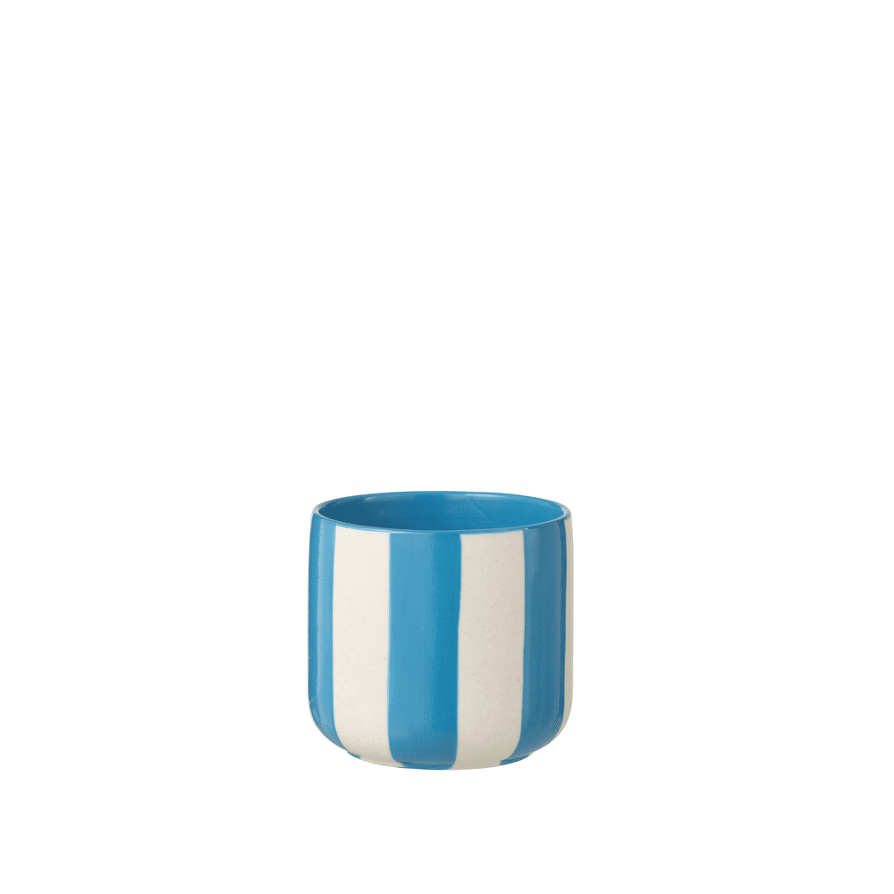 De Bloempot Gestreept Keramiek Blauw/Wit M 13x13x12.5cm is een charmante en kleurrijke bloempot die een fris en speels accent toevoegt aan je interieur.