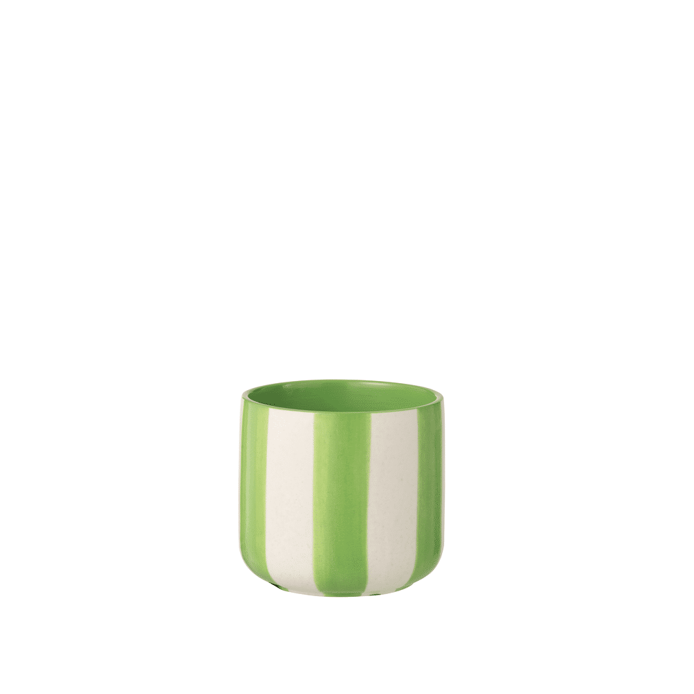 De Bloempot Gestreept Keramiek Groen/Wit M 13x13x12.5cm is een charmante, duurzame en kleurrijke bloempot die frisheid en stijl aan je interieur toevoegt.