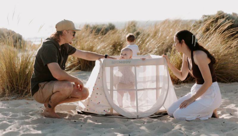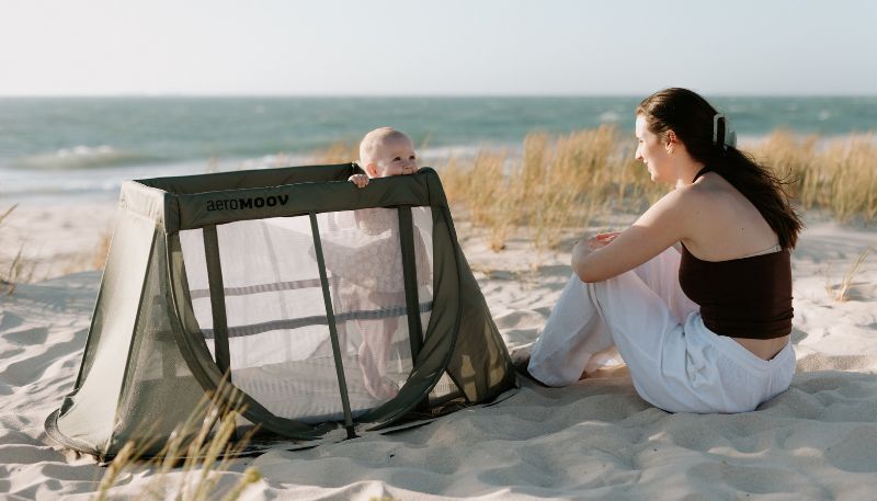 Het reisbedje van AeroMoov zet je neer en vouw je op in slechts enkele seconden. Het is superlicht en compact. Ideaal voor binnen én buiten. Je kindje kan overal fijn spelen en veilig slapen. Wij zijn helemaal fan!