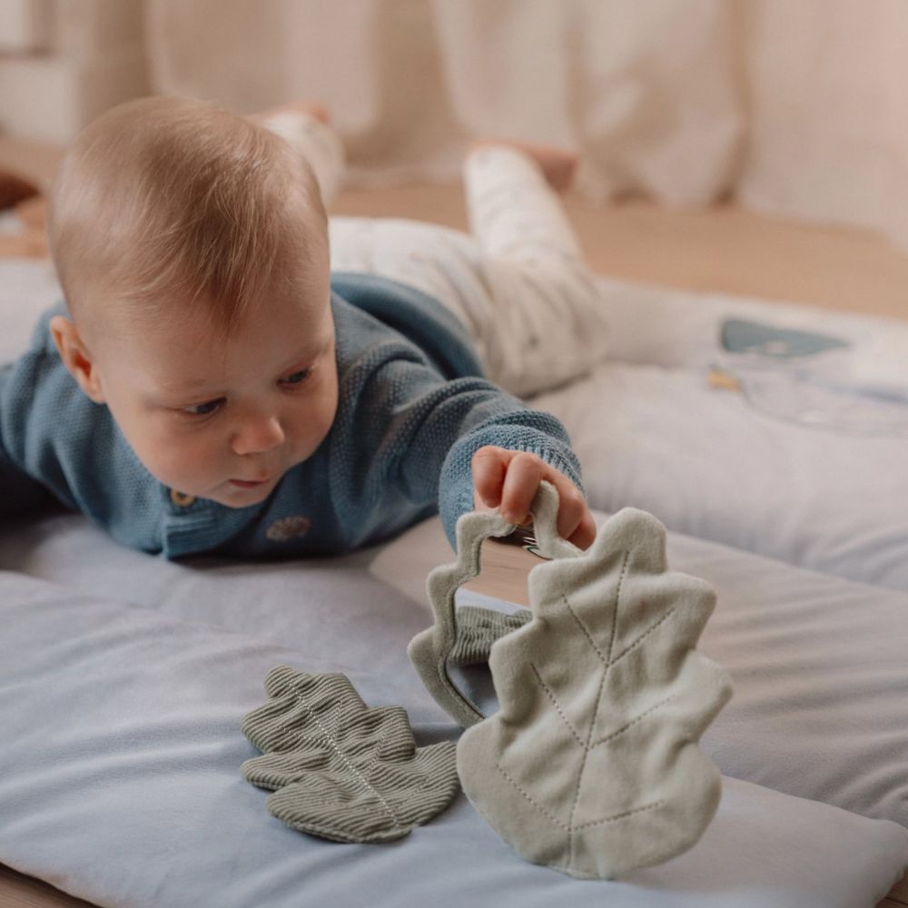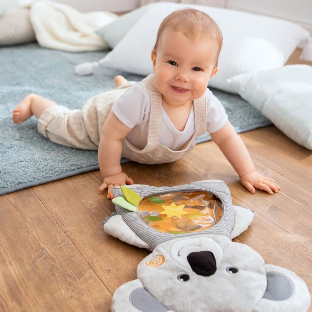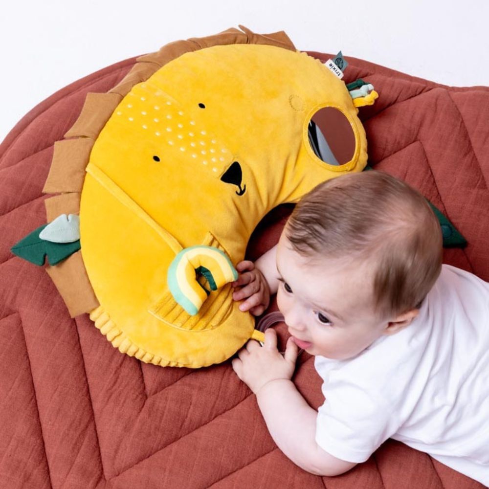 In het begin vinden de meeste kindjes tummy time nog heel spannend. Gelukkig bestaan er heel wat verschillende hulpmiddeltjes om dit leuk en ontspannend te maken voor je mini. Geluidjes en speeltjes stimuleren je baby om op te kijken en zichzelf omhoog te drukken. Zo bestaan er leuke speelmatten en kussens met verschillende texturen, vormen en kleurtjes die je kindje prikkelen.
