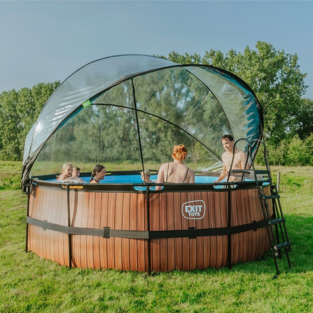 Een zalig vakantiegevoel in je eigen tuin? Neem dan zeker eens een kijkje tussen de zwembaden van Exit. Deze zwembaden met hun unieke houtlook komen in verschillende soorten en maten. Zo kies je eenvoudig het formaat dat het best bij jouw tuin past. De poten van het frame zorgen voor optimale stabiliteit, zodat het zwembad zelfs bij de wildste wateravonturen stevig op zijn plek blijft staan!