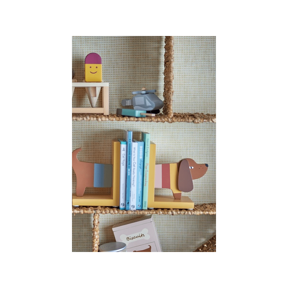 Het Bloomingville Mini Charlie Boekeinde Multi combineert stijl en functionaliteit. Perfect om je boeken netjes georganiseerd te houden en een vrolijke touch aan je interieur te geven.