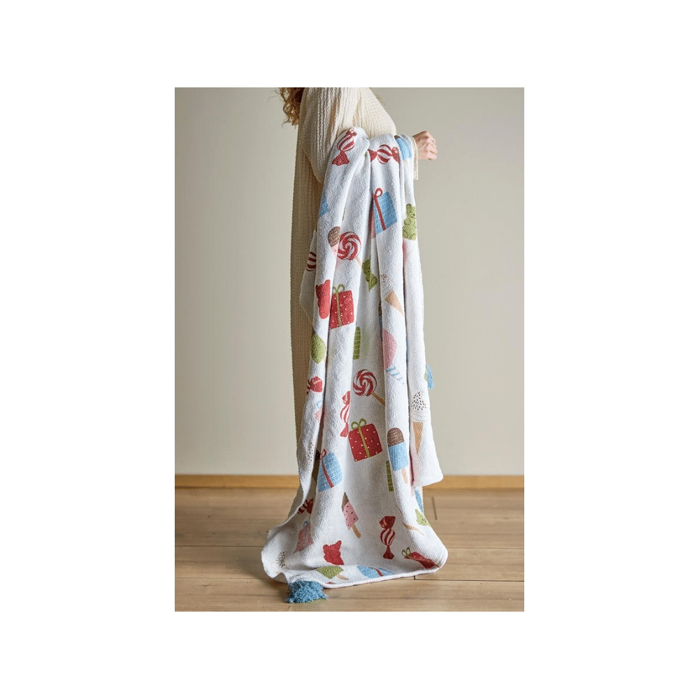 De Bloomingville Mini Sweets Deken Multi 160x130cm combineert comfort, warmte en vrolijk design. Ideaal voor gezellige momenten thuis of buiten.