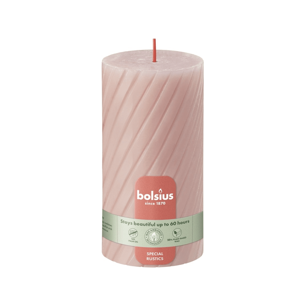 - Product: Bolsius Rustiek Twist Stompkaars 130/68 Misty Pink