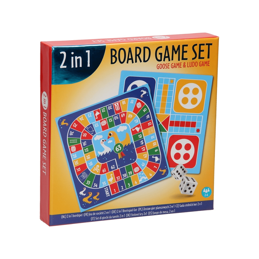 Perfect voor gezinnen en spelletjesliefhebbers.- Assortiment met twee klassieke spellen: Ganzenbord en Mens Erger Je Niet