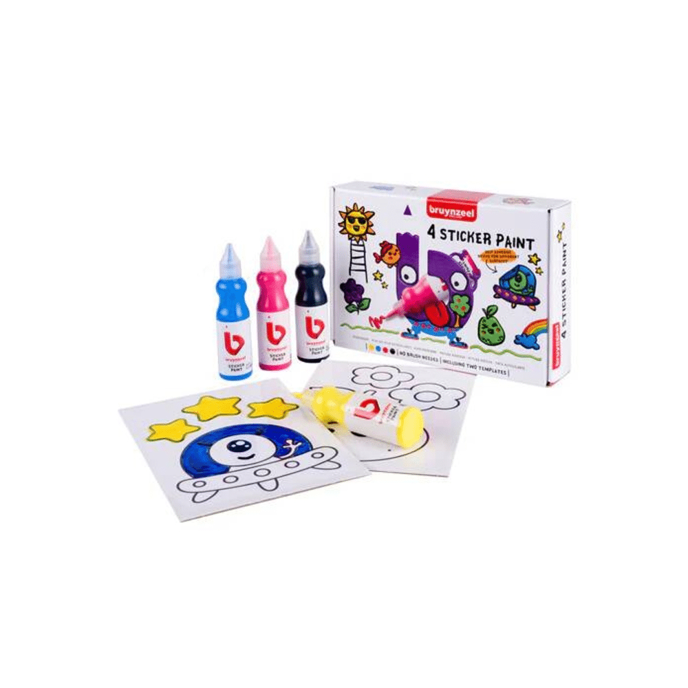 Deze Bruynzeel stickerverfset met 4 kleuren en 2 templates biedt een leuke creatieve ervaring voor jonge kunstenaars. Makkelijk in gebruik, messvrij en gegarandeerd sticker plezier.