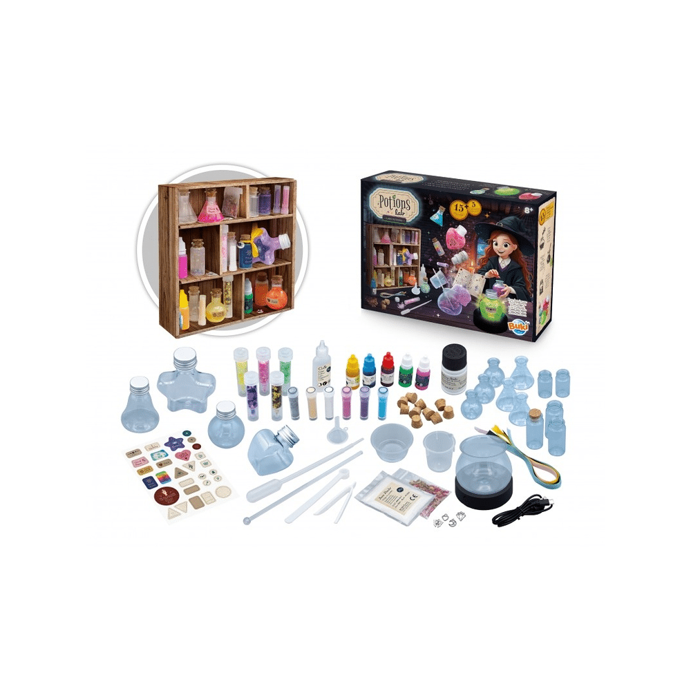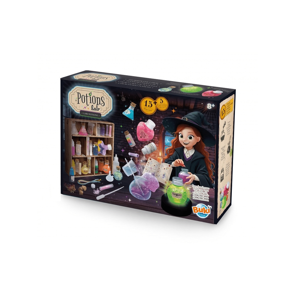 Duik in de wereld van magie met de Buki Labo Magische Toverdrankjes! Met deze complete set kunnen kinderen 15 kleurrijke en glinsterende toverdrankjes maken. Vul de flesjes met sprankelende pigmenten, confetti, lintjes en bedeltjes en creëer een persoonlijke magische collectie. Plaats je creaties op de meegeleverde lichtvoet en zie hoe ze transformeren tot een schitterende nachtlamp. Bovendien biedt de ketel ruimte voor 5 magische experimenten met de meegeleverde reagentia en alledaagse ingrediënten uit huis, voor extra leer- en speelplezier. De set werkt op een 3,7V lithium-ion batterij (inbegrepen).