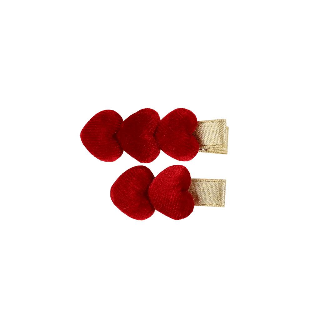 Busy Lizzie Haarclips Velvet Hartjes Rood