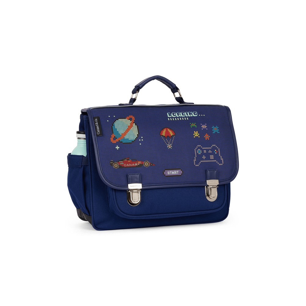 Met deze Caramel & Cie boekentas Pixel Art 38 cm ga je elke dag stijlvol naar school. Het speelse design met kleurrijke pixels op een diepe blauwe achtergrond geeft een echte retro gaming look. Ideaal voor kinderen die houden van games en een unieke stijl.