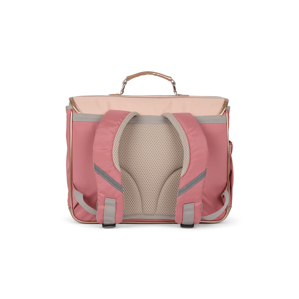 Met deze elegante boekentas Sonata van Caramel en Cie ga jij elke schooldag stijlvol op pad. Het verfijnde design met zachte roze en paarse tinten straalt rust en klasse uit. Gouden borduursels en subtiele vlinders geven een speelse, luxueuze toets. Perfect voor kinderen die houden van een unieke en stijlvolle schooltas.
