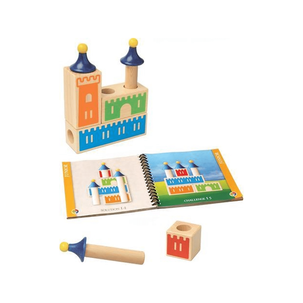 Laat je kind spelenderwijs groeien met Castle Logix! Dit houten denkspel daagt kleuters vanaf 3 jaar uit om torens en blokken op de juiste plek te zetten. Maar pas op: de grote toren mag de kleine niet in de weg staan. Een puzzel vol plezier én ontwikkeling!Stimuleer logisch denken en motoriek
