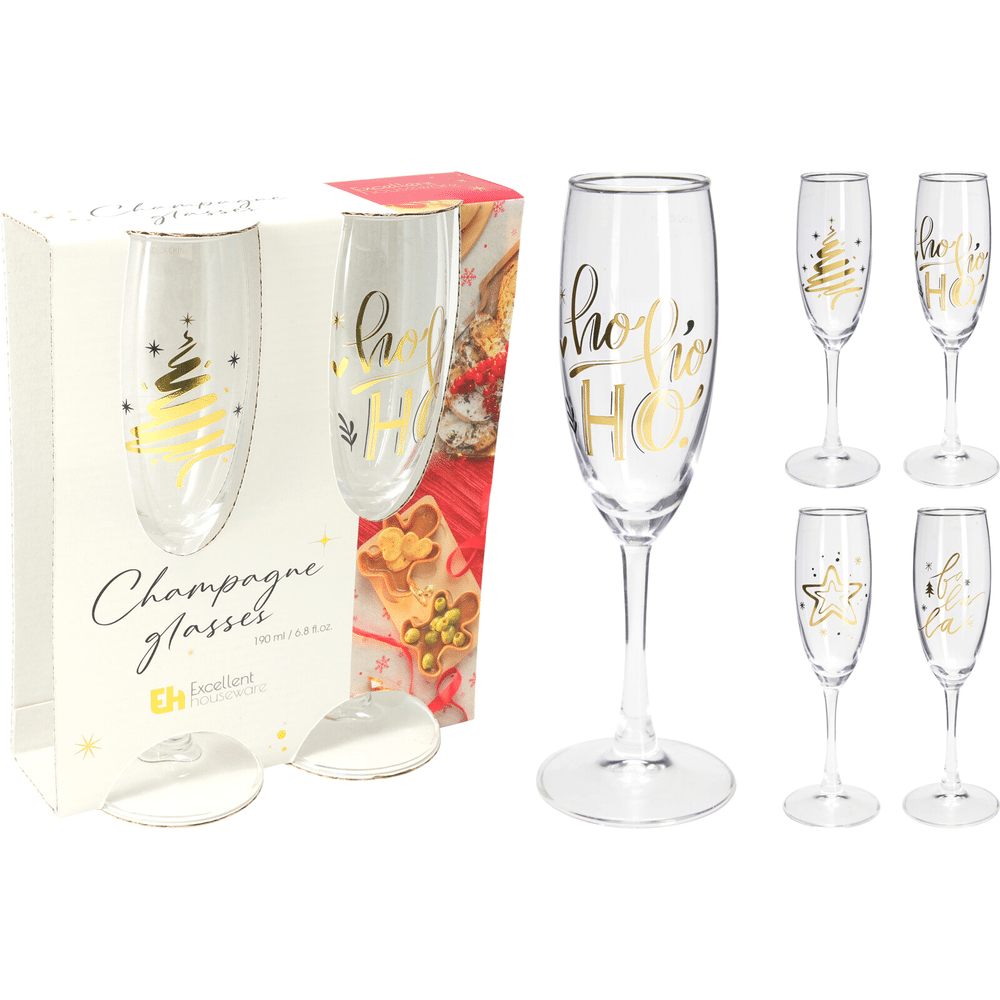 Op zoek naar dat tikkeltje extra voor je kersttafel? Met deze schitterende set van 2 champagneglazen met een gezellige kerstopdruk breng je meteen sfeer in huis. Of je nu proost met bubbels, cava of een feestelijk alcoholvrij drankje — deze feestglazen maken van elk moment iets bijzonders. De glazen hebben een inhoud van 190 ml: perfect om elegant te klinken tijdens het kerstfeest, een winterse brunch of oudjaar. Laat het knallen met deze stijlvolle kerstbekers en maak van je eindejaarsfeest een sprankelend succes!Wat mag je verwachten?