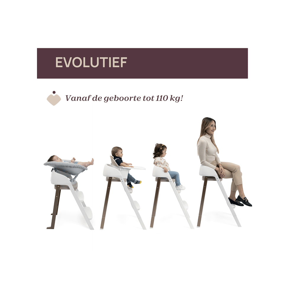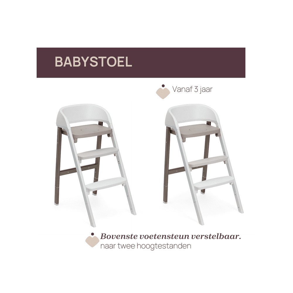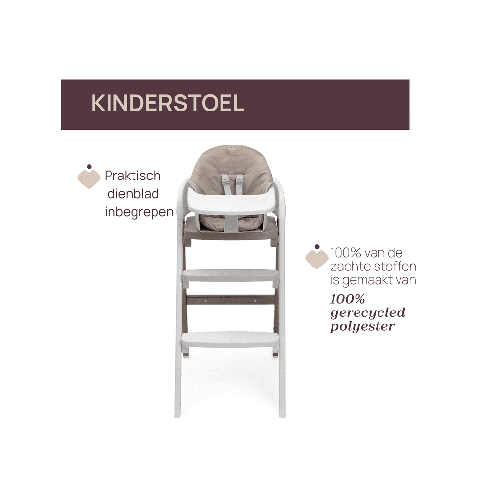 Dankzij het aanpasbare design zijn zithoogte, rugleuning en voetensteun volledig verstelbaar. Zo zit je kind altijd comfortabel en in de juiste houding, wat de maaltijd relaxter en aangenamer maakt.