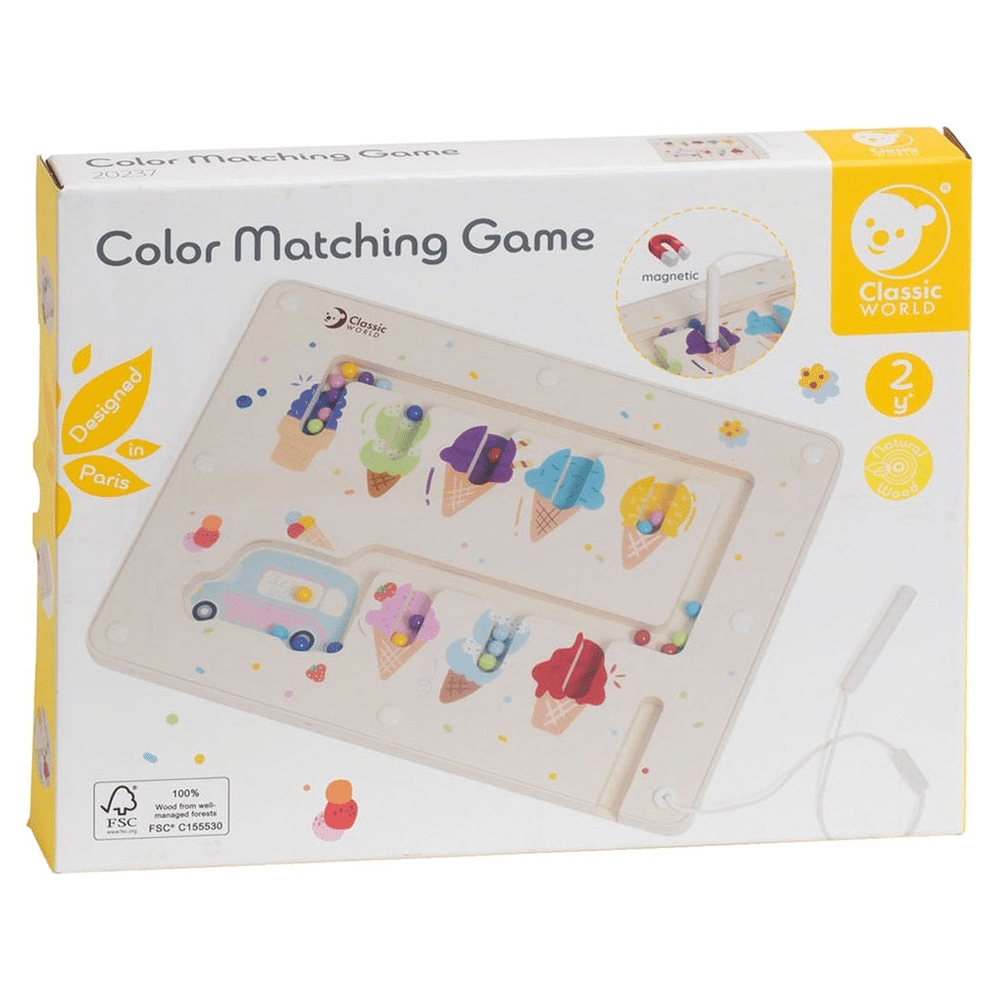 Laat je kindje kleuren leren en plezier maken met de Classic 20237 Kleuren Matchen Spel. Een houten spel met een schattige ijskar waar bolletjes op het ijs gelegd worden, geschikt voor kinderen vanaf 2 jaar.Waarom dit spel zo leuk is