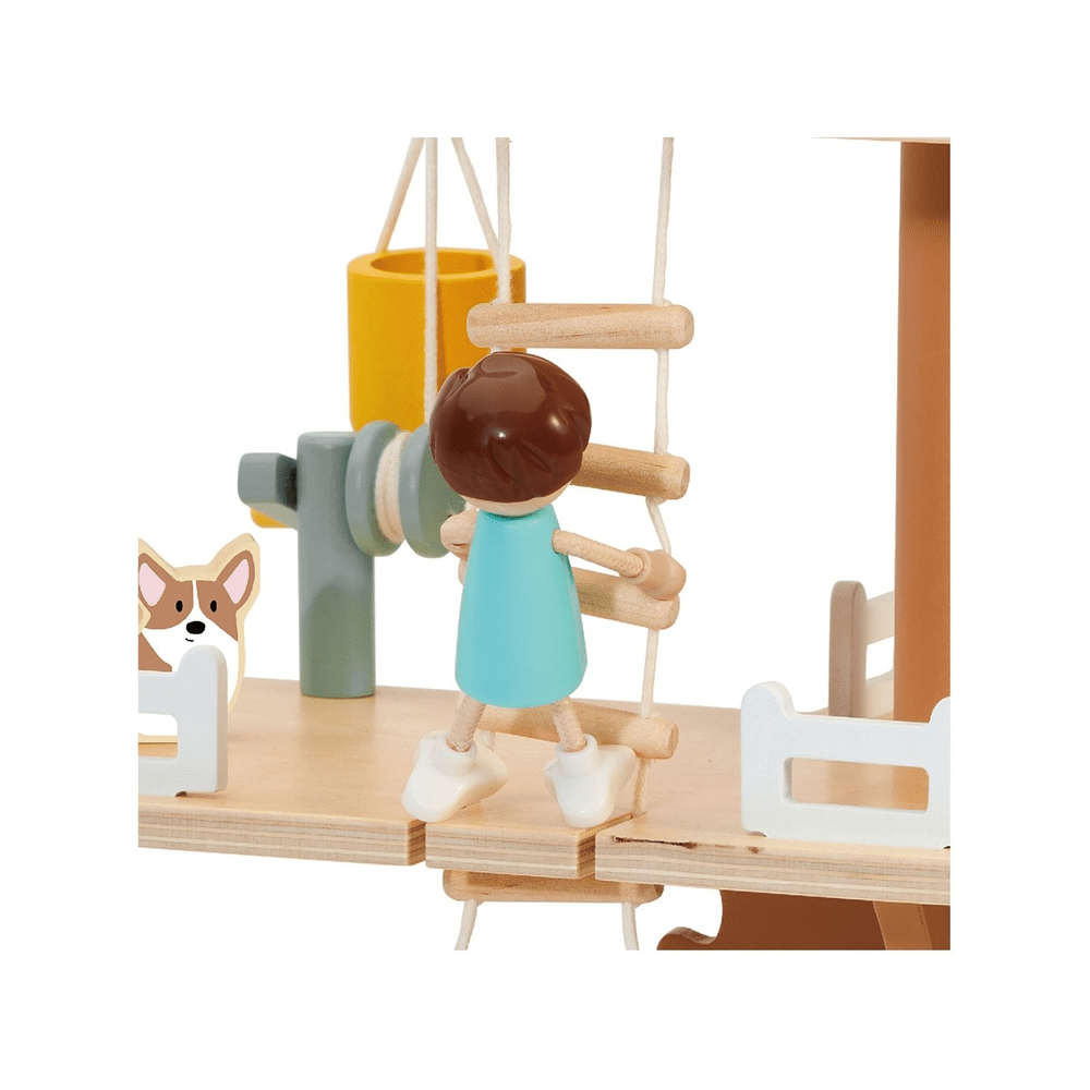 Met verschillende onderdelen kan je kindje een complete boomhut bouwen en avonturen verzinnen.- 31-delige houten speelset