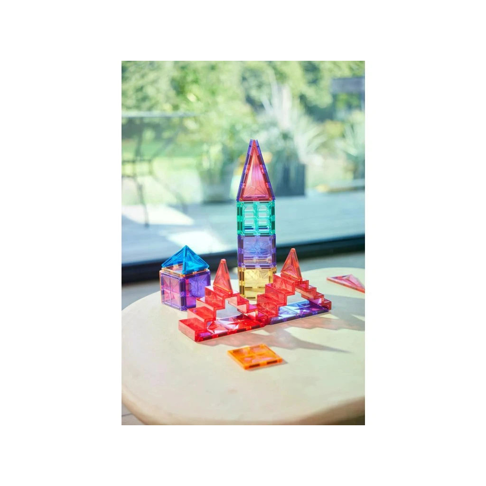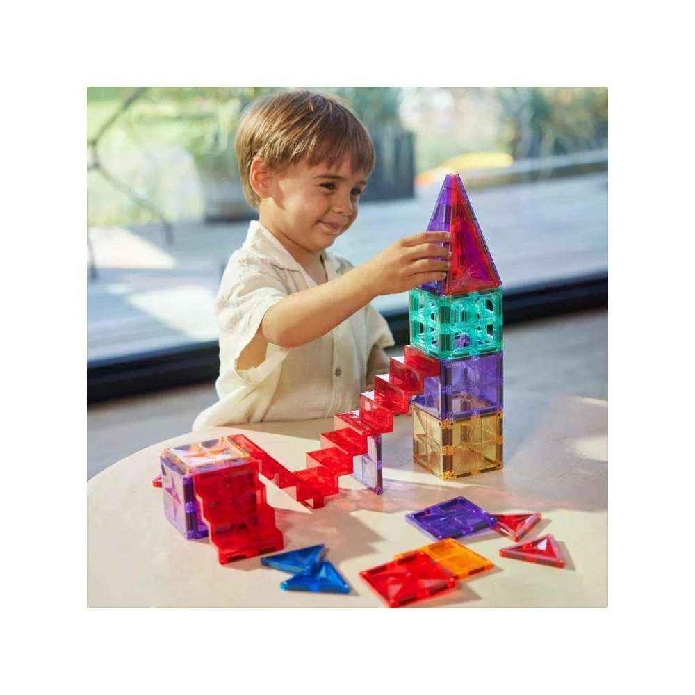 Laat kinderen hun creativiteit letterlijk de hoogte in jagen. Of ze nu solo spelen of samen bouwen, deze set maakt elke bouwsessie nog leuker én slimmer.- 34 magnetische bouwstukken met trappen