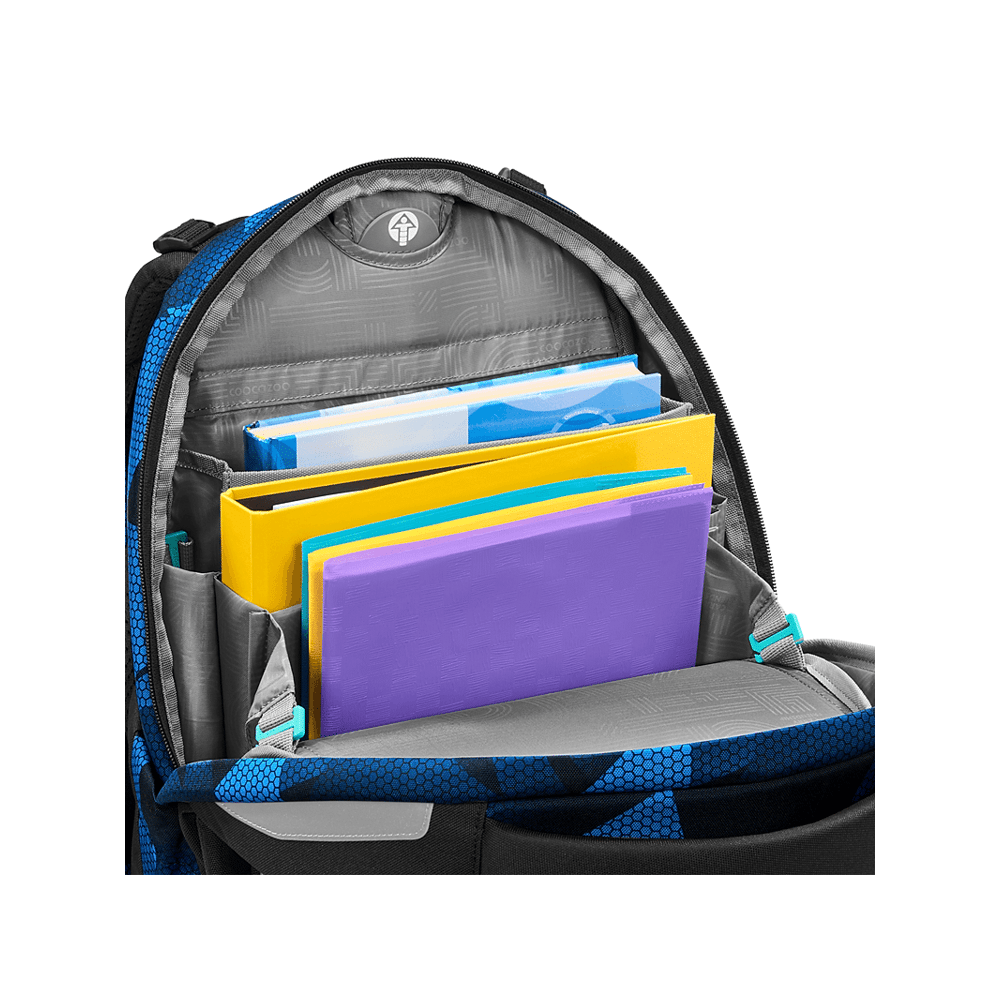 Deze ergonomische schoolrugzak zit heerlijk, zelfs bij een volle lading. De gewatteerde rugbekleding en verstelbare schouder-, borst- en heupriemen zorgen voor extra draagcomfort.- Gewatteerde en ademende rugbekleding