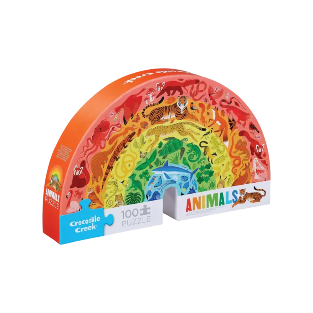 Crocodile Creek Shaped Box Puzzel 100st Dieren Regenboog