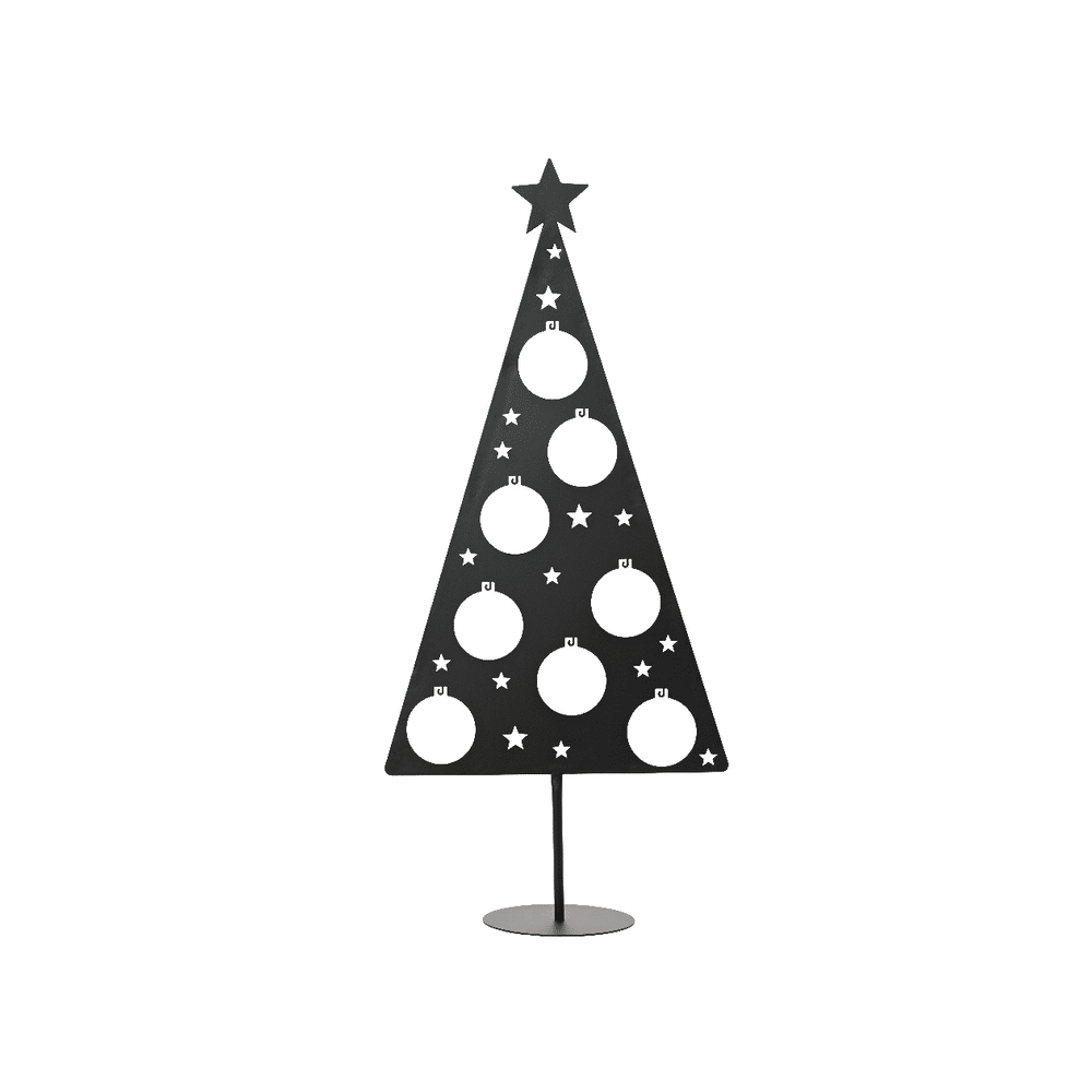 Dankzij de stevige ijzeren constructie staat hij stabiel en oogt hij tegelijk luchtig en elegant. De poedercoating in diepzwart zorgt voor dat tikkeltje luxe, terwijl de stervormige uitsnijdingen een magisch spel van licht en schaduw creëren. Perfect om jouw kerstversiering een hedendaagse en unieke toets te geven. Met deze kunstzinnige designboom haal je een tijdloos stuk in huis dat jaar na jaar sfeer brengt tijdens de feestdagen.