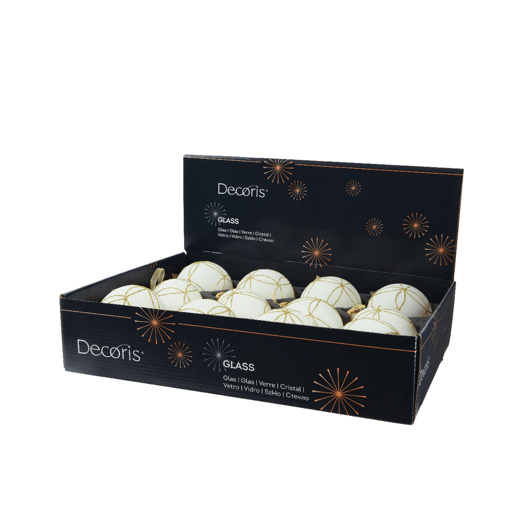 - Product: Decoris Kerstbal Glas Wolwit 8cm Assortiment Prijs per stuk