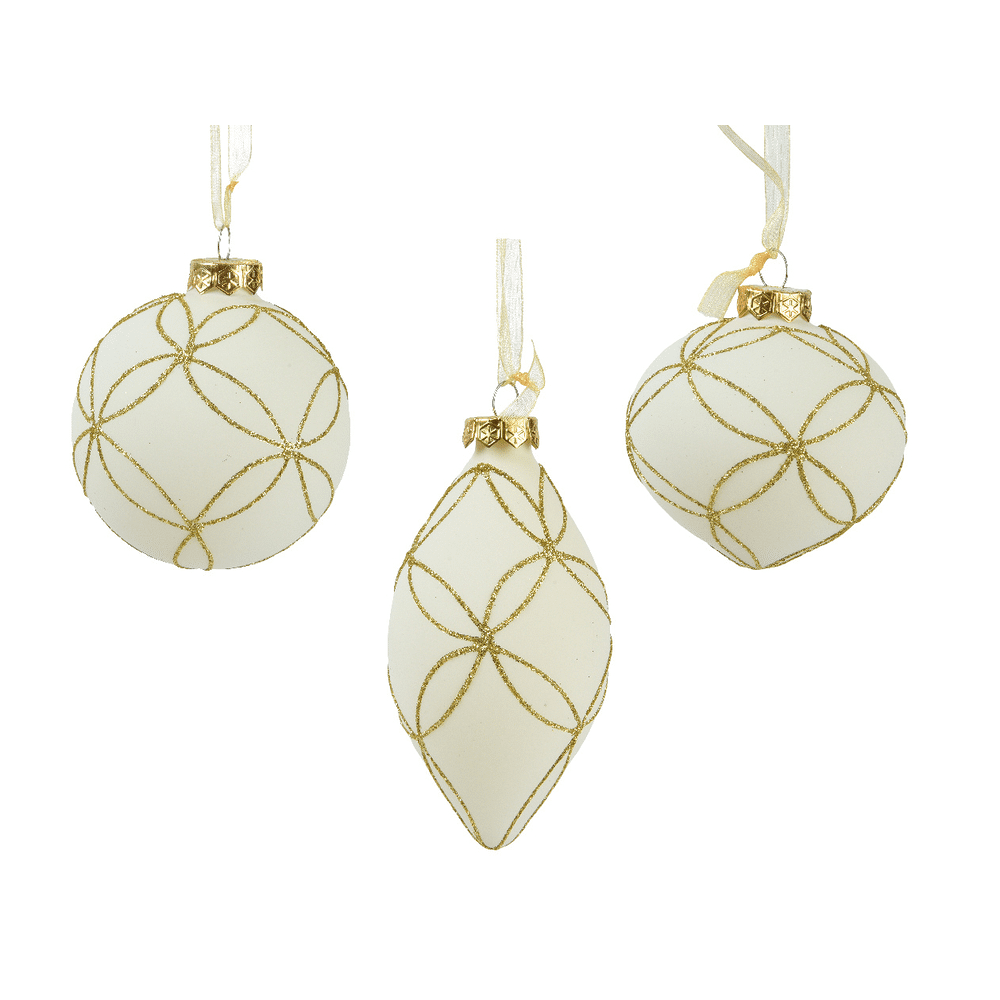 Decoris Kerstbal Glas Wolwit 8cm Assortiment Prijs per stuk