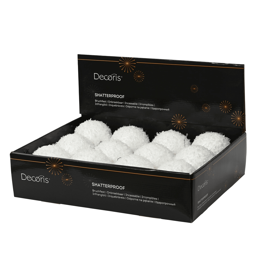 Klaar om je kerstboom dat tikkeltje extra charme te geven? Deze Decoris kerstbal in zacht winterwit laat je kerstboom — euh, je hele living — instant stralen. De elegante kerstbol past moeiteloos in elk interieur: van klassiek tot strak modern. Door het lichte foam voelt hij veerlicht aan, dus je hangt dit kerstornament/kersthanger zonder gedoe aan tak of haakje. Het subtiele sneeuw-effect geeft die gezellige, winterse touch waar je zó blij van wordt. Perfect als boomversiering of als stukje kerstdecoratie in een krans, schaal of takkenbos. Jij zorgt voor de plek, deze witte kerstbal doet de rest.