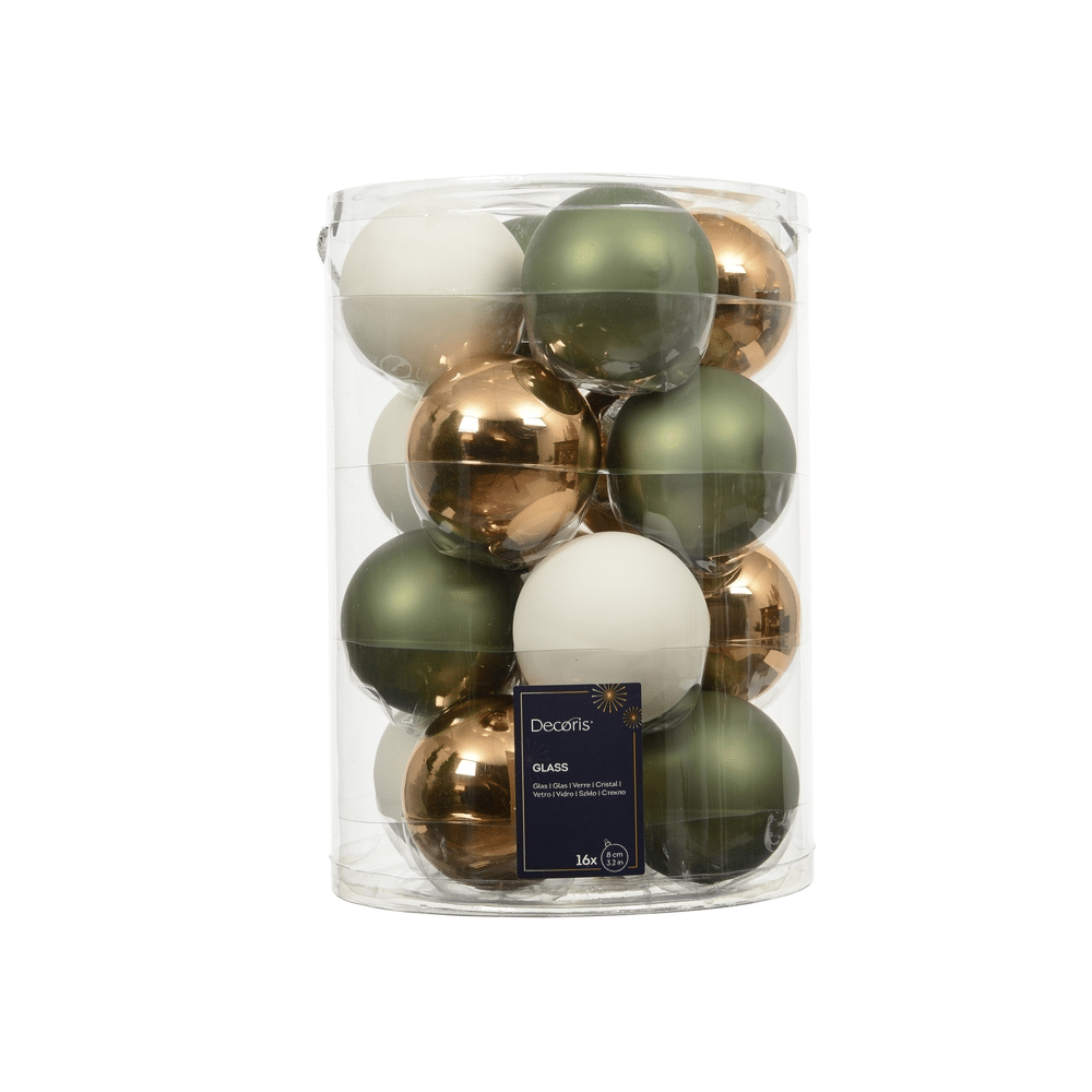 - Product: Decoris Kerstballen Set Glas 8cm 16 stuks Wolwit Multi