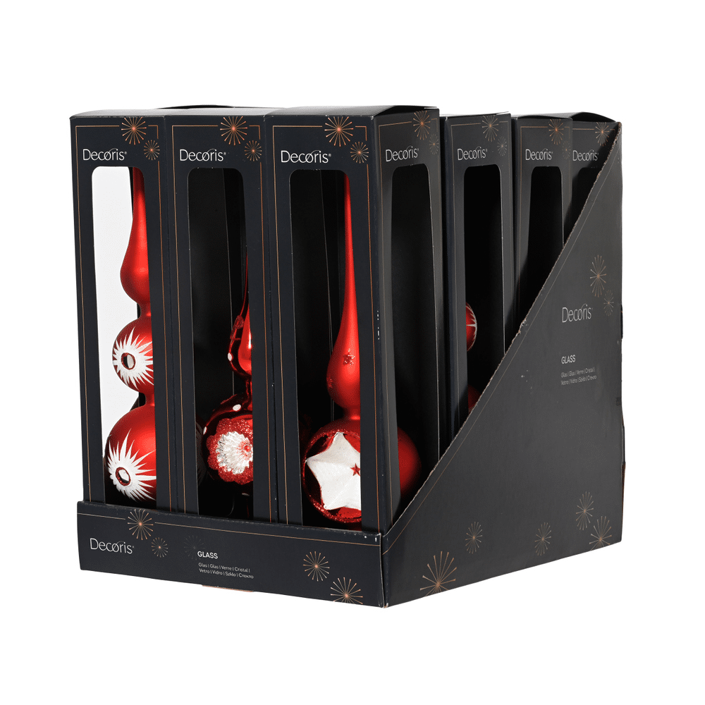 Decoris Piek Glas Kerstrood 31cm Assortiment Prijs per stuk