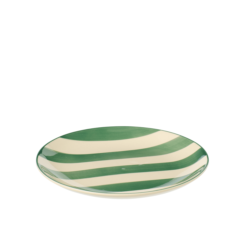 Een elegant dessertbord van Aardewerk met groen-wit gestreept design. Compact van formaat maar groot in stijl. Perfect voor dagelijks gebruik en speciale gelegenheden.