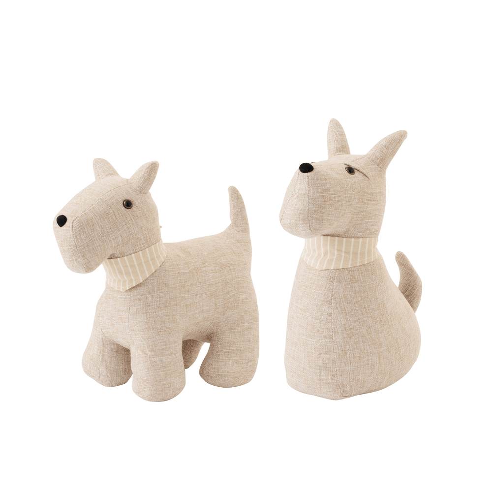 Deurstop Hond Met Sjaal Polyester Beige Small 33x20x35cm 2 assortiment
