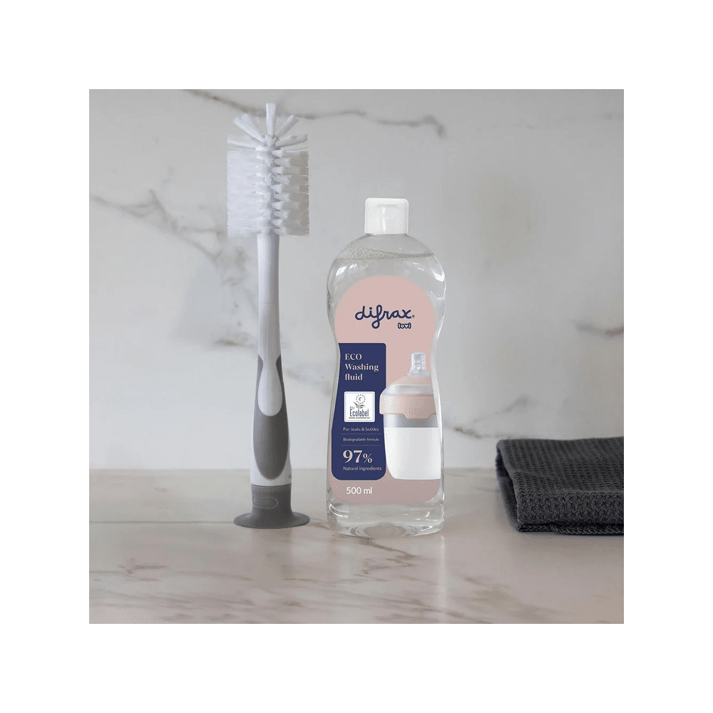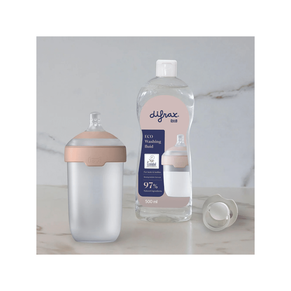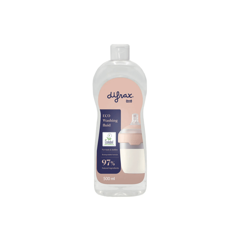 Met het Difrax LOVI ECO Afwasmiddel van 500 ml reinig je babyflesjes, fopspenen en accessoires veilig en grondig.De vernieuwde formule verwijdert moeiteloos melk en etensresten.