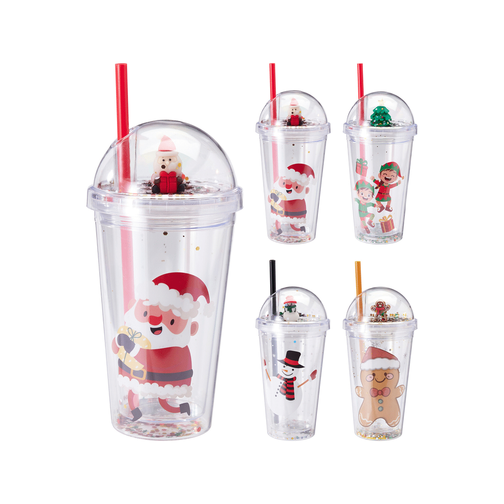 Deze vrolijke drinkbekers met rietje en deksel brengen je meteen in kerststemming. Het handige formaat is perfect voor warme chocolademelk of een fris sapje. Ideaal voor feestjes, traktaties of gewoon een gezellige winteravond thuis. Je krijgt een set van 4, elk met een ander schattig kerstmotief.Feestelijk én praktisch