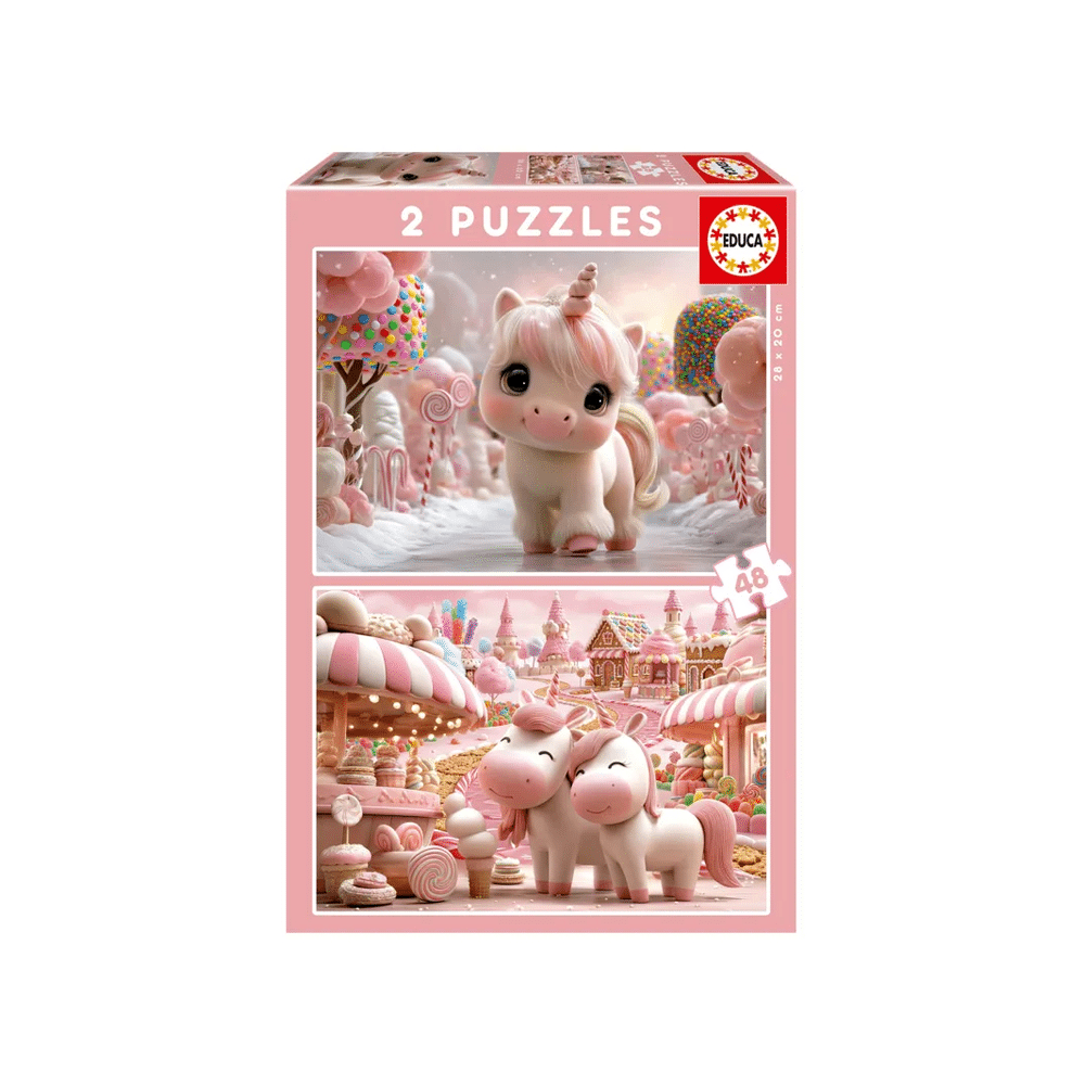 Duik in een kleurrijke fantasiewereld met deze schattige puzzelset van Educa. Je krijgt twee vrolijke puzzels met lieve eenhoorns en snoepachtige details. Ideaal voor kinderen vanaf 5 jaar die houden van creatief spelen en ontdekken.
