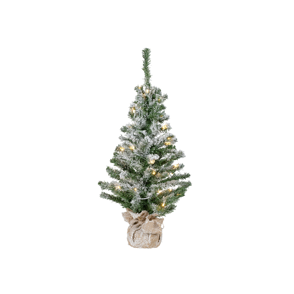 Breng meteen de kerstsfeer in huis met dit gezellig besneeuwd kerstboompje van Everlands! Met z’n hoogte van 75 cm is dit mini boompje ideaal voor kleine plekjes waar je toch dat warme kerstgevoel wil oproepen. Zet het op je dressoir, nachtkastje of bureau, en je waant je zo in een winterwonderland. De zachte naaldjes en de licht besneeuwde afwerking geven deze kerstspar een natuurlijke, charmante look. De ingebouwde warmwitte LED-lichtjes zorgen voor een gezellige gloed, en dankzij de handige timer springt het licht automatisch zes uur aan – ideaal, toch? Dit compacte winterboompje is makkelijk in onderhoud, werkt op batterijen en staat stevig in een jute zak. De groene kabel valt amper op tussen de takken. Perfect als extra kerstdecoratie of als blikvanger in een kleinere ruimte.