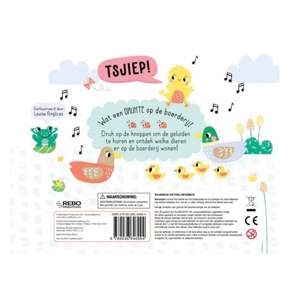 Bezoek de boerderij en ontdek de geluiden van verschillende boerderijdieren! Dit interactieve geluidenboek laat je kleintje de geluiden van de dieren horen, waardoor leren over het boerderijleven nog leuker wordt!