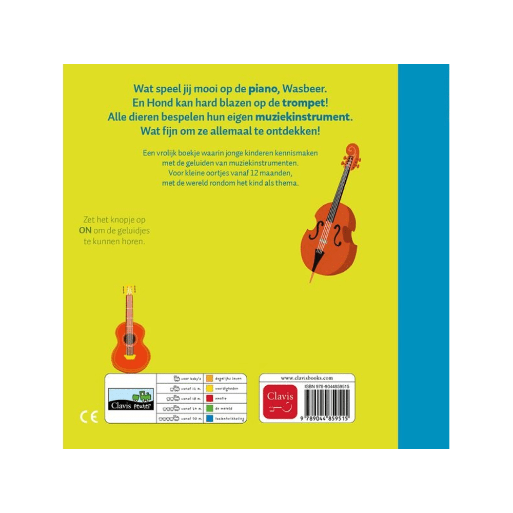 Laat je kindje de wondere wereld van muziekinstrumenten ontdekken met dit vrolijke geluidenboekje van Anita Bijsterbosch. Elk dier speelt een ander instrument en dat zorgt voor een verrassend muzikaal feest. Druk op de knopjes en hoor hoe de piano, trompet en nog veel meer instrumenten tot leven komen. Ideaal voor nieuwsgierige kindjes vanaf 12 maanden!Spelen, luisteren en ontdekken