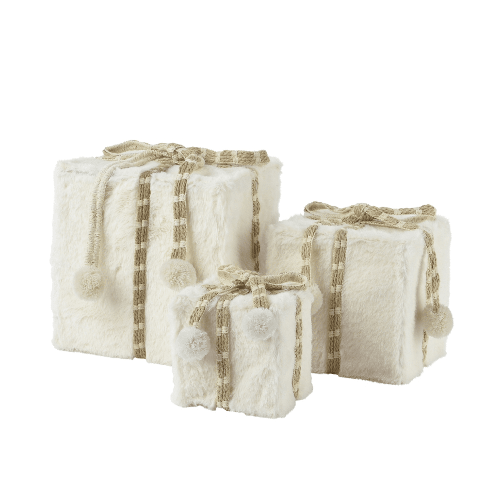 Giftbox Kunstbont L16.00-w16.00-h16.00cm Wolwit