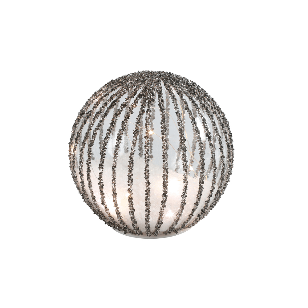 Glas Bal Led Timer Rond Stripes M Zwart L15B15H15Cm