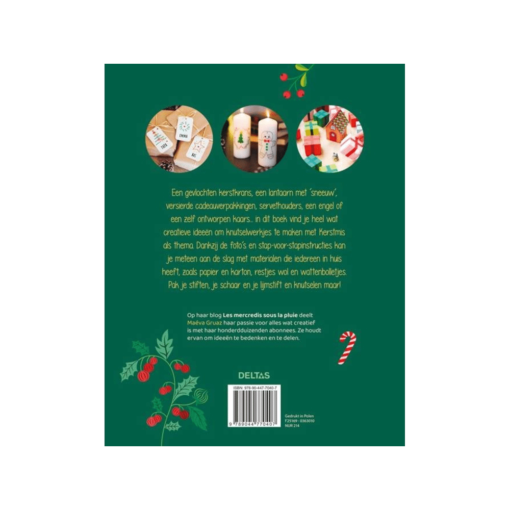 Kies jouw favoriet: een lantaarn met sneeuw, een geweven kerstkrans, of een servethouder met flair. Zelfs een zelfontworpen kaars knutsel je in geen tijd. Dankzij dit boek krijg je meteen zin om je stiften, schaar en lijm boven te halen!Creatief de kerstvakantie in