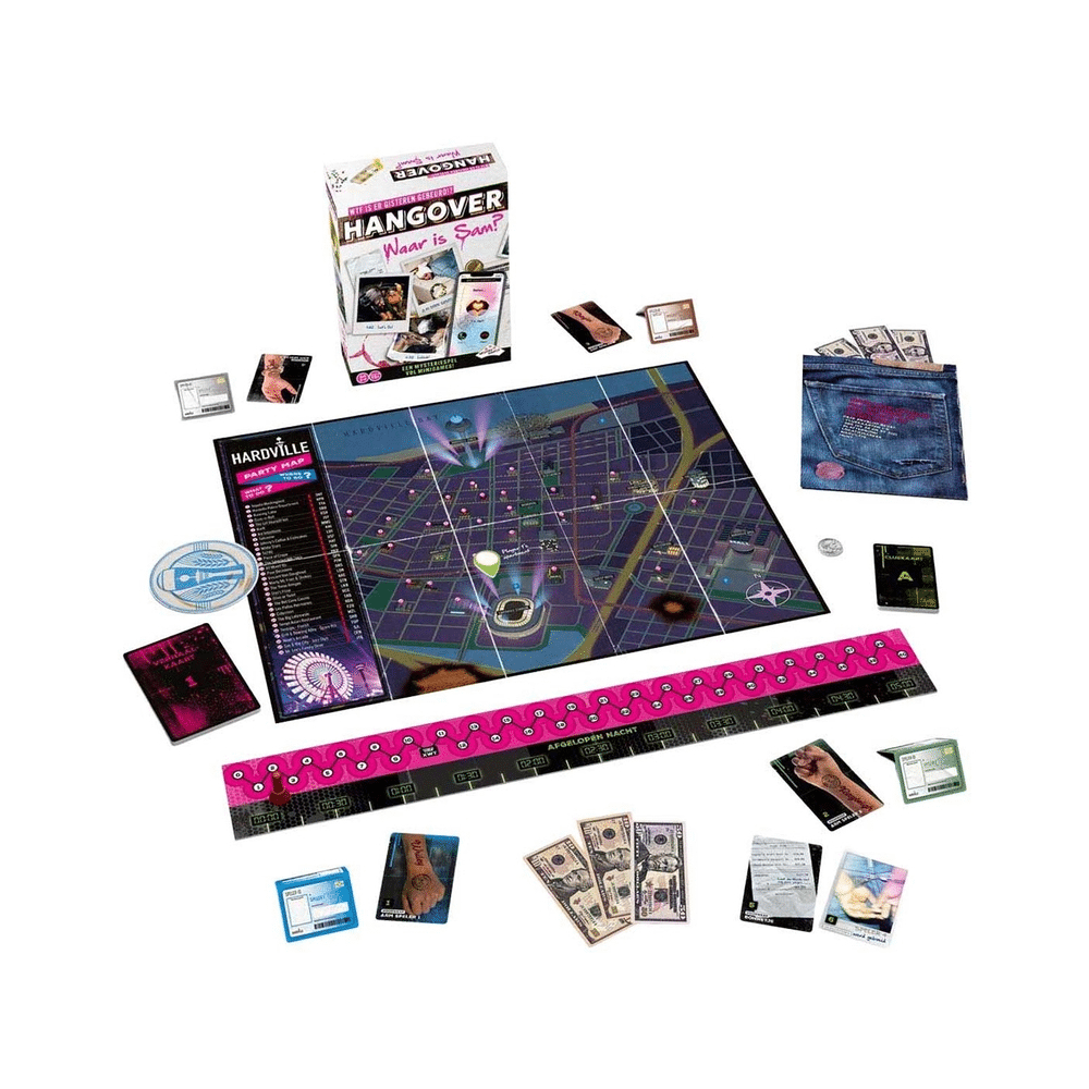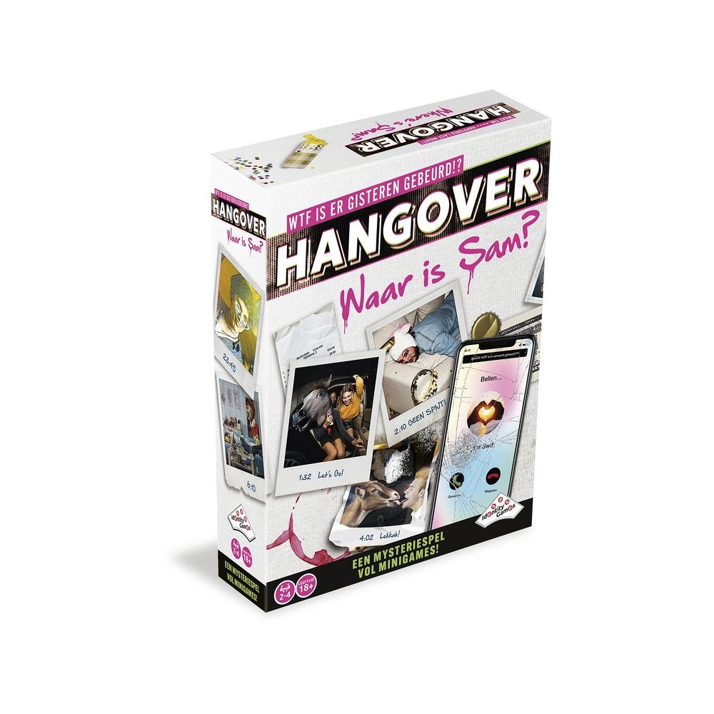 Hangover: Waar is Sam? is geen gewoon gezelschapsspel. Het is een avondvullend avontuur vol mysterie, gekke situaties en teamwork. Zodra jullie het raadsel ontrafeld hebben, geef je het spel door aan de volgende groep vrienden. Eén avond, één missie: vind Sam terug!Een dolavond vol mysterie: waar is Sam gebleven?