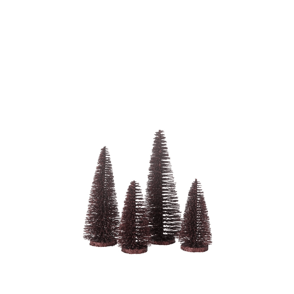 J-line Kerstbomen Glitter Set in doos Bordeaux 10x10x15cm