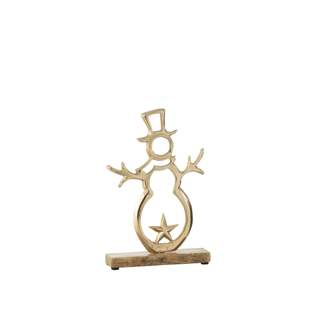 J-line Sneeuwman Ster op voet Alu Hout L Goud 17x5x26cm