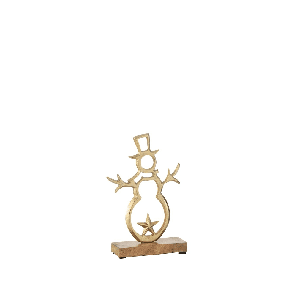 - Product: J-line Sneeuwman Ster op voet Alu Hout S Goud 13,5x5x21cm