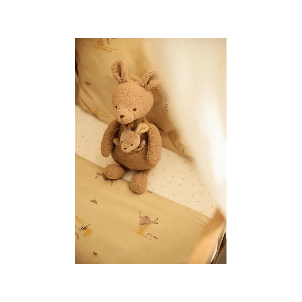 Dit dekbedovertrek van Jollein tovert de kinderkamer om tot een warm nestje vol liefde. De speelse all-over print met kangoeroes en hun baby's in de buidel straalt geborgenheid uit. De zachte vanillekleur met natuurlijke tinten creëert een rustgevende sfeer waar je kindje heerlijk wegdroomt. Het luchtige katoen voelt comfortabel aan en zorgt voor een fijne nachtrust.Wat maakt dit dekbedovertrek zo fijn?